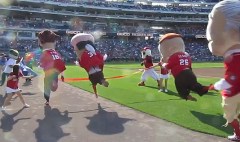 In one of the closest presidents races in Nationals Park history, all four presidents ran neck and neck for nearly the entire length of the race on Saturday at Nationals Park. As they approached the finish line, George faded and Abe Lincoln put on a burst of speed as Tom and Teddy dove for the tape.