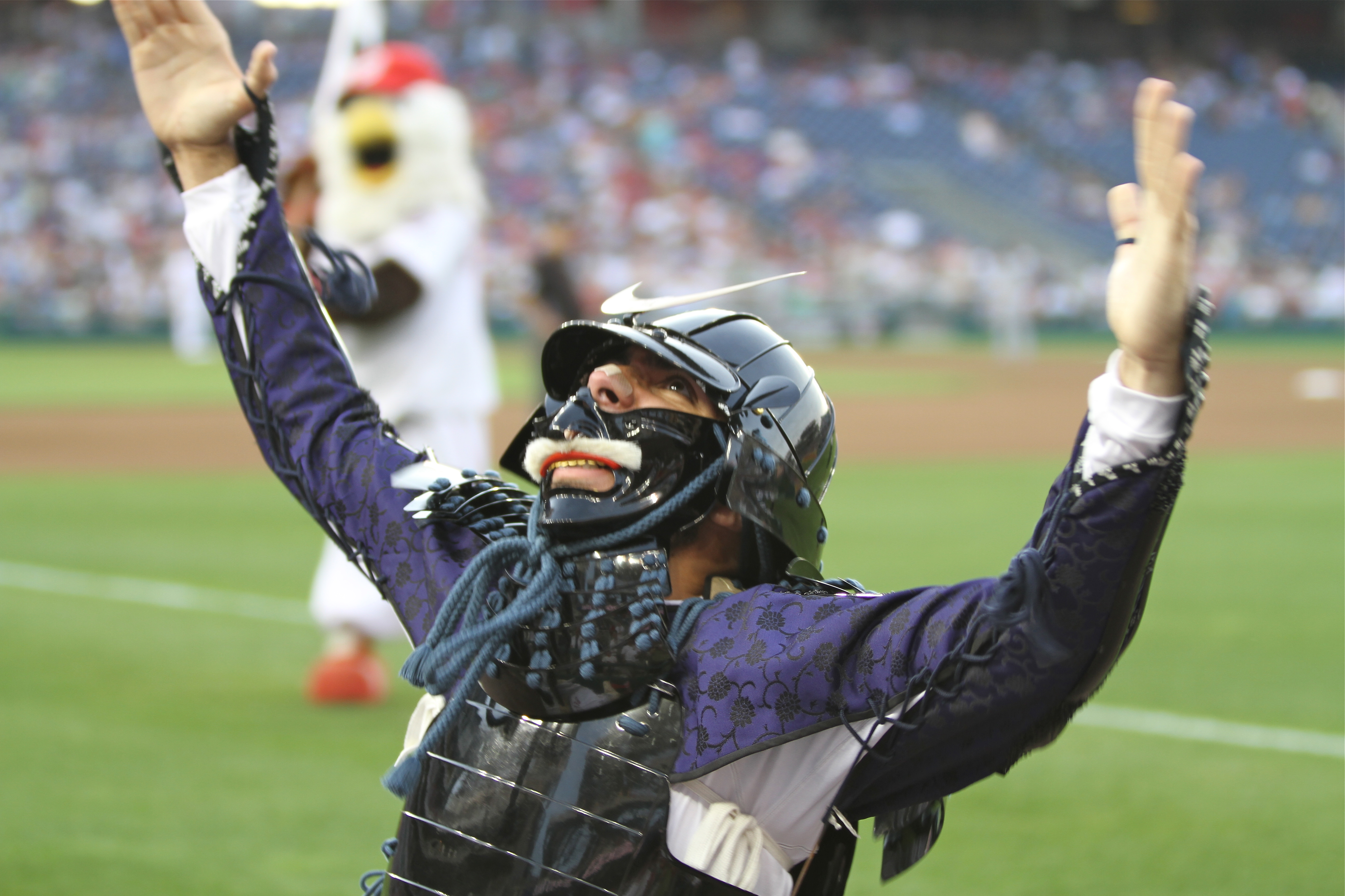 So in the middle of the race Wednesday night, with Thomas Jefferson in the lead, he couldn’t have been surprised when the bullpen door opened and a Samurai warrior emerged to chase him down.