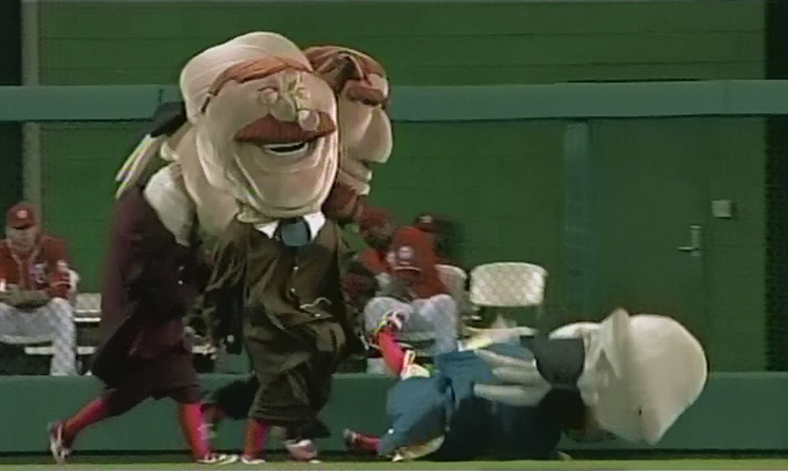 Not realizing how much coverage they were getting, the presidents then pulled out signs at the finish line in an egregious attempt to get even more. The signs said “ESPN Sunday Night Baseball” one one side, and “ESPN This Is Sportscenter” on the other.