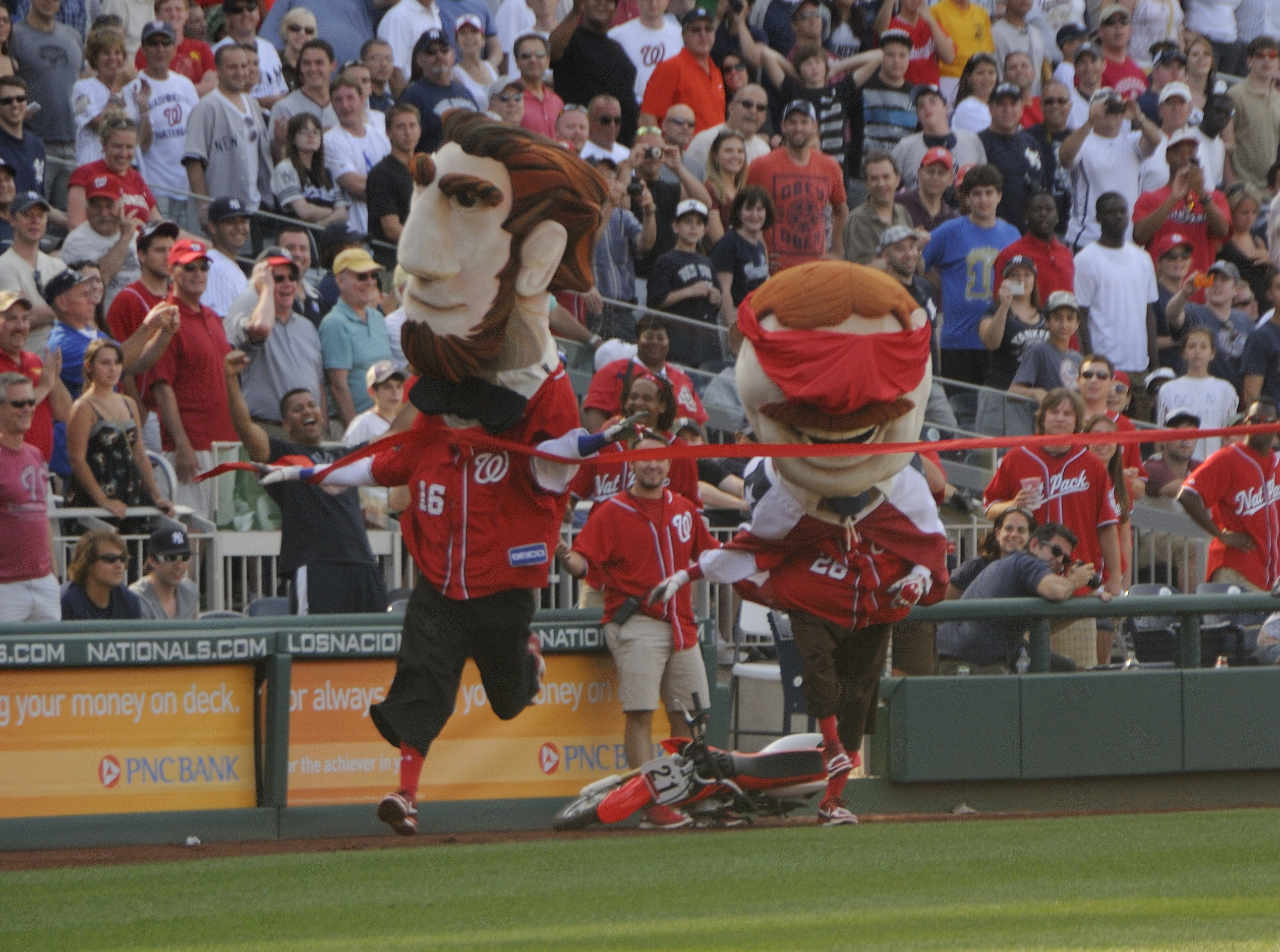 Nationals Park PA Announcer Jerome Hruska got the crowd cheering as #26 pulled away from the pack, but just as it seemed victory was at hand, Teddy started slowing down and came to a stop just short of the tape.