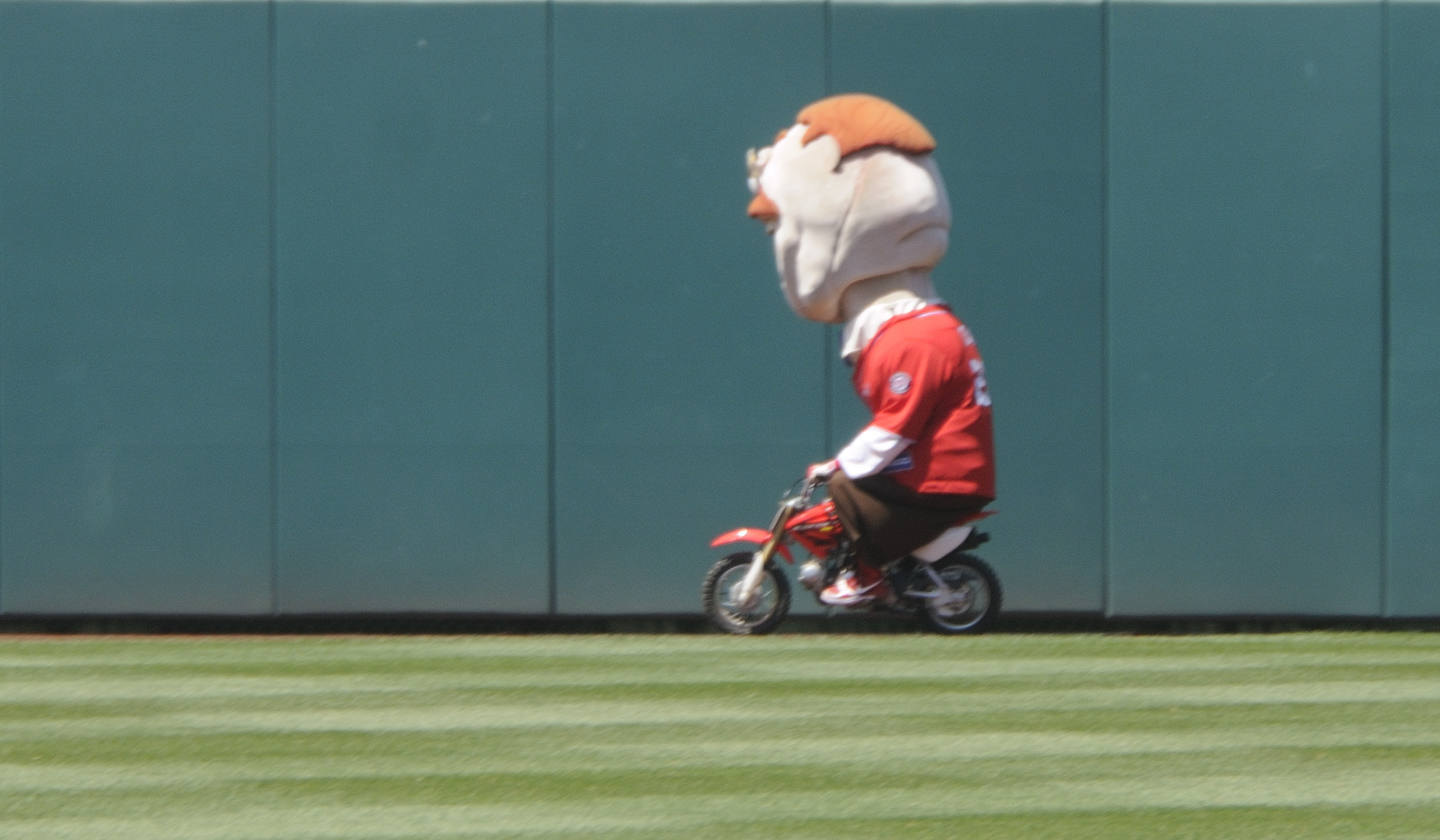 With a sellout crowd of 41,287 cheering him on, Teddy almost caught up to the pack, but Abe Lincoln took the tape, and Roosevelt skidded out, falling off the bike at the finish line.