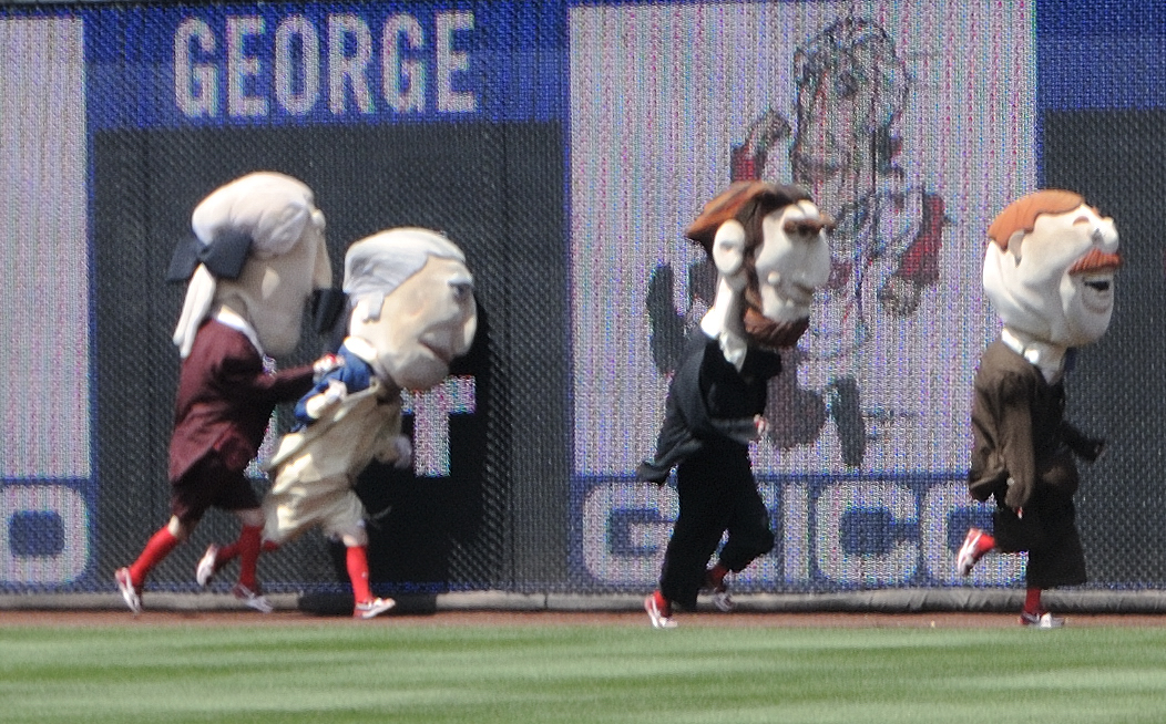 Over the years, it’s been president #16 Abe Lincoln who has built up a reputation for cheating, but something got into Jefferson Sunday, as the Sage of Monticello went on a rampage, first slamming George Washington into the outfield wall, then pushing aside Abe Lincoln in the corner.