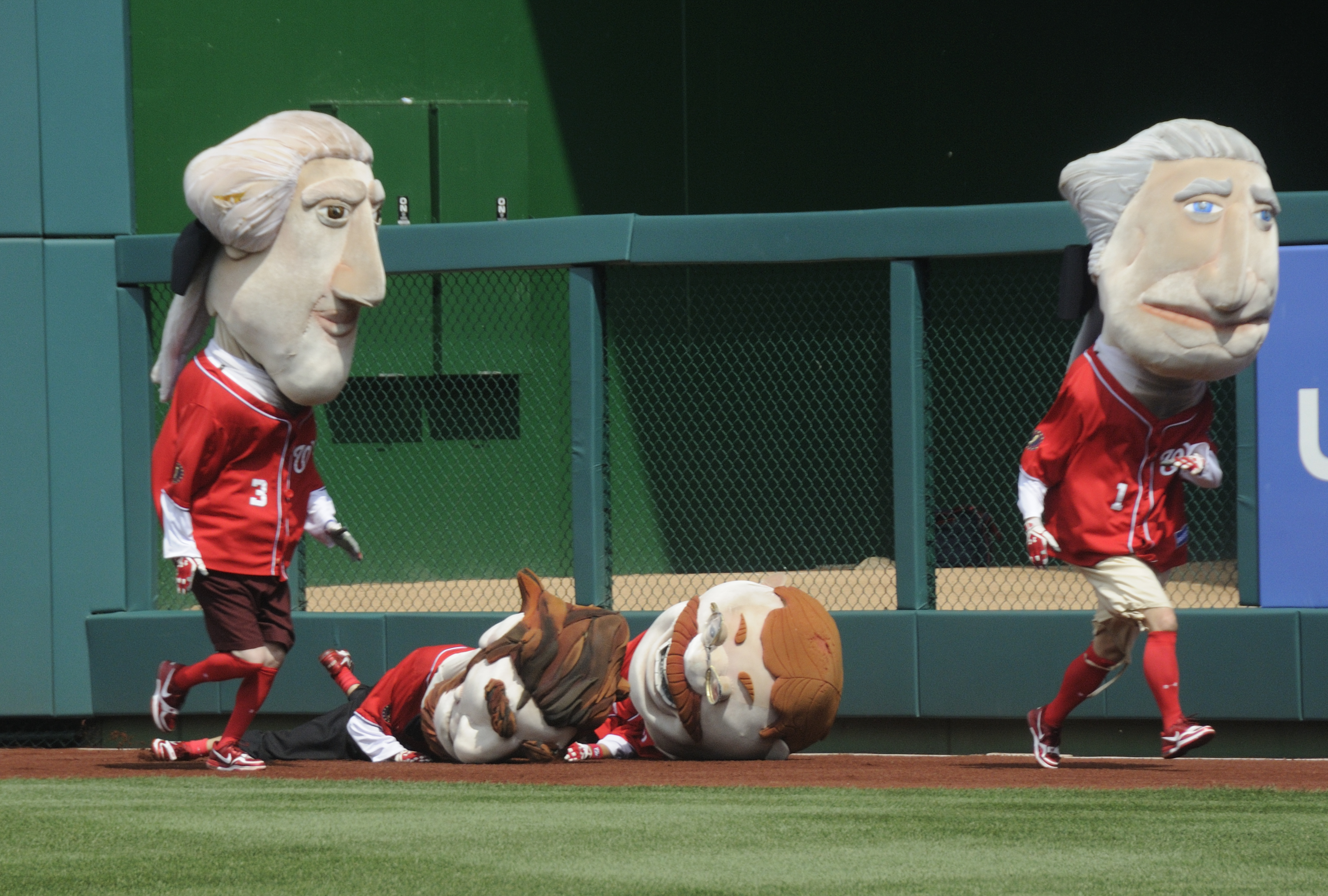 But with Teddy Roosevelt and Abe Lincoln leading the pack along the right field warning track, George Washington came from behind and shoved them both into the outfield wall.