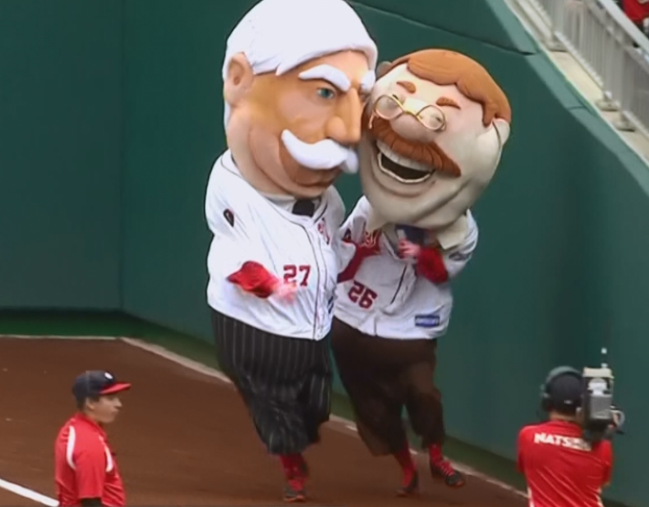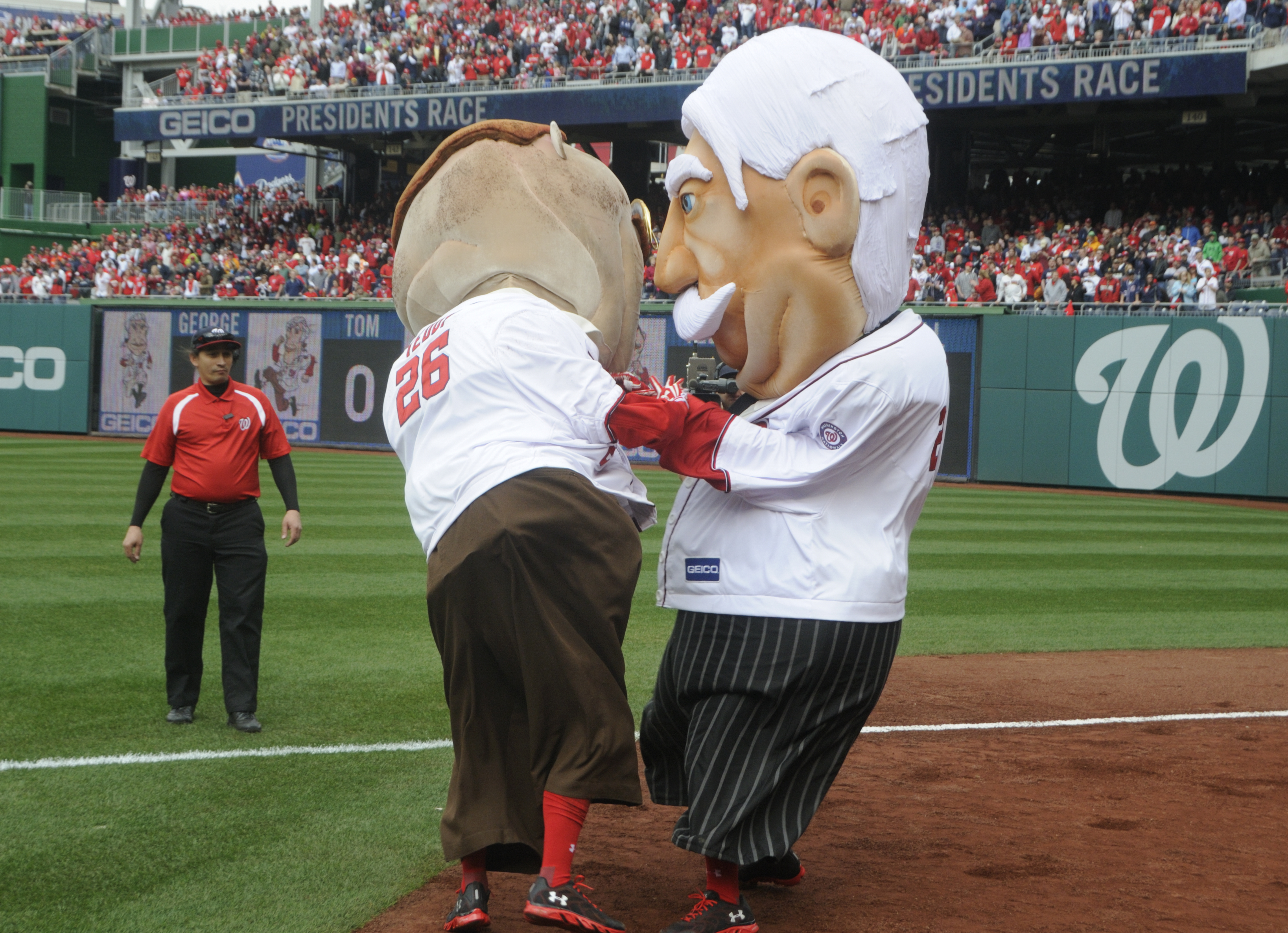 A Bryce Harper first-pitch home run and 4 nearly-perfect Stephen Strasburg-pitched innings later, the Nationals’ new racing president William Howard Taft (the Nats plan to call him “Bill”) made his presidents race debut.