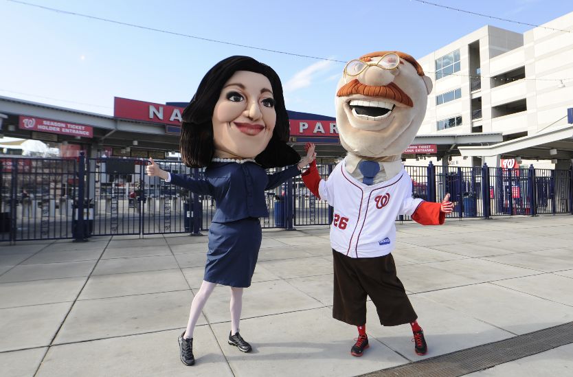 A giant Selina Meyer mascot will join the Washington Nationals racing presidents Tuesday night at Nationals Park, as part of a promotion for Sunday’s season premier of the HBO series VEEP.