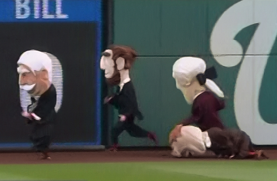 Abe Lincoln made his strongest charge of the season, surging past as Teddy and Tom tripped in the outfield; but there was no stopping George Washington, who took the tape for the fifth day in a row.