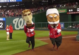 After dominating the presidents race since Nationals Park opened, Abe Lincoln was 0-for-24 to start the 2013 season; but on Saturday night, “Honest” Abe returned to his cheating ways, and with an unlikely accomplice, took his first victory of the season.