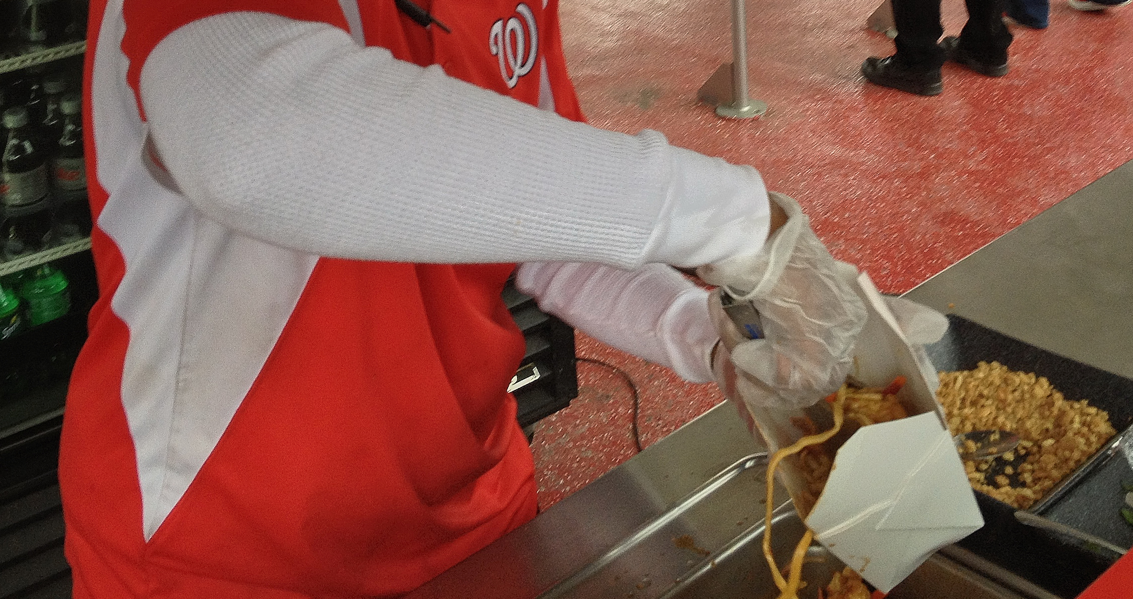To be clear, there have been good food options at Nationals Park for years. If you haven’t had Ben’s Chili Bowl Half Smoke, you haven’t had the full Nationals Park experience. The shawarma and falafel at Max’s Kosher Grill behind section 143 continue to be the sandwiches to beat in the stadium (but being strictly kosher, they are not open on Fridays and Saturdays). Jammin’ Island Barbeque makes great jerk chicken and ribs. Hard Times Cafe Cincinnati chili still warms the soul on cool evenings (and has the fastest service in the park), and Fluffy Thoughts Bakery behind section 135 is the undisputed dessert king. The Scoreboard Walk restaurants from Union Square Restaurant Group (Blue Smoke, Shake Shack, Box Frites, and El Verano) remain incredibly popular, and the team’s outside food policy is still the best in professional sports.