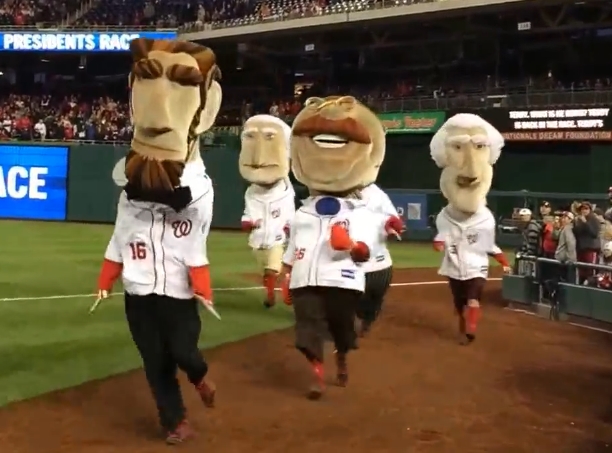 Teddy entered the race from the bullpen and ambushed his opponents with a series of jabs as they approached the right field corner. But Abe Lincoln wasn’t phased, and the Great Emancipator was able to hold off a late charge from Roosevelt to take his third straight race.