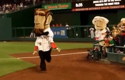 On Tuesday night at Nationals Park, Teddy Roosevelt stopped his fellow racing presidents on the warning track to read them the “Joke of the Day” in celebration of International Joke Day.